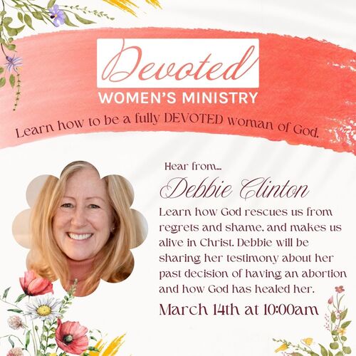 Debbie Clinton is redeemed by Jesus Christ and passionate about proclaiming the freedom found in his grace. Drawing from Ephesians 1-2, she shares how God rescues us from regrets and shame, and makes us alive in Christ. Debbie will be sharing her testimony about her past decisions of having an abortion and how God has healed her.